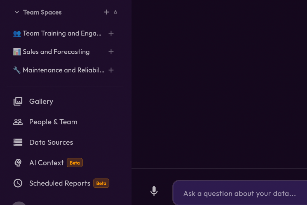 We've moved beyond simple sharing. Team Spaces now function like Slack channels within your BI tool.